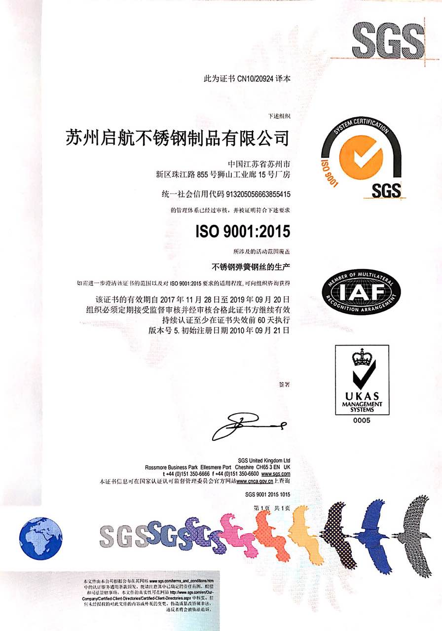 啟航通過量身定做的ERP管理系統,實現了對生產流程的全程管理監控,所有產品、原料、設備、人員都可實現批次號追溯;原料方面只選采國內外優質母材,絕不為節約成本偷工減料;標準化日式生產管理流程,嚴格遵守作業指導,定期定時進行產線培訓與考核;與多家高校共同合作、研發應用于不同領域與不同性能要求的彈簧產品;自主改良產線設備、融入先進日韓生產元素,與時俱進,堅持技術革新;在行業內率先通過ISO9001:2015、ISO14001:2015、 IATF16949:2016體系認證;并配合客戶為特殊工藝的彈簧要求進行量身定制。